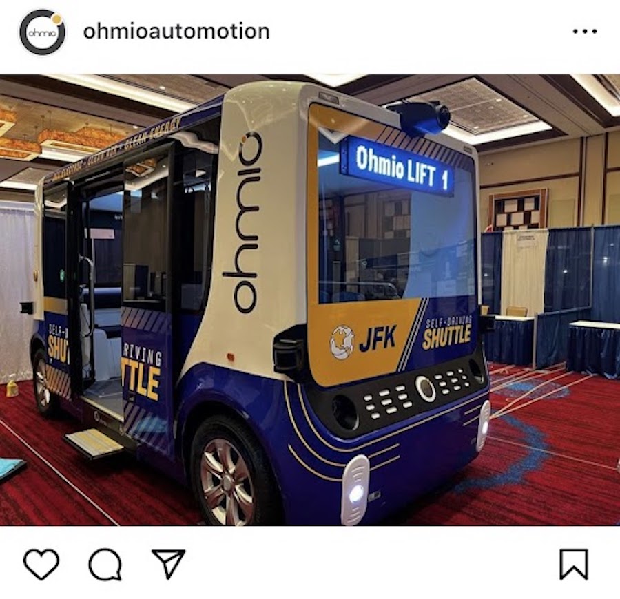 オミオ社(本社・ニュージーランド)が所有するこのシャトルは、夏までの運行を予定しており、自律走行であることを示す看板が設置される。また、車内には安全係員が配置され、乗客の出迎えや案内を行う。青と黄色のライ豆のような形をしたシャトルは、ボタンに触れるだけで電源が入り、手動で運転する場合はジョイスティックで操作する。このシャトルには8人以上の乗客が乗れる立席スペースがあるが、テスト中は安全のため、座ってシートベルトを着用するよう求められる。(9日、ゴッサミスト)
