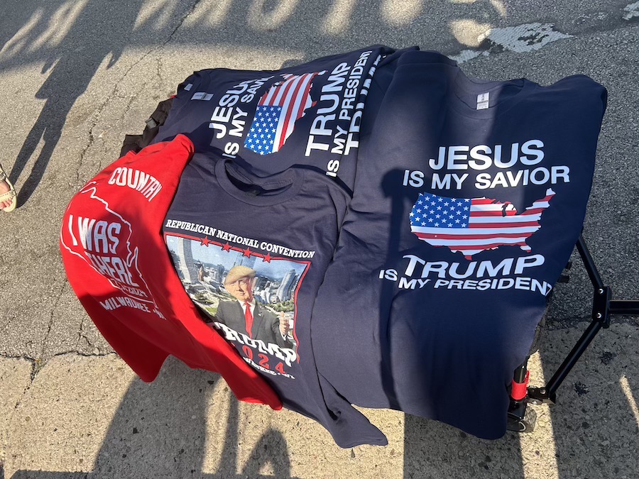生トランプを見た代議員らはその後、顔を紅潮させて街に繰り出した。女性は赤やブルーのスーツが多く、人々のファッションや街の装飾は星条旗の色にあふれている。イエス・キリストは私の救世主 トランプは私の大統領」と書かれたTシャツが飛ぶように売れている。歩道で「トランプ、トランプ」と叫んでいる代議員もいる。暗殺未遂事件を乗り越えたことで、トランプ氏は支持者にとって「神」のような存在となり、興奮を呼んでいる。