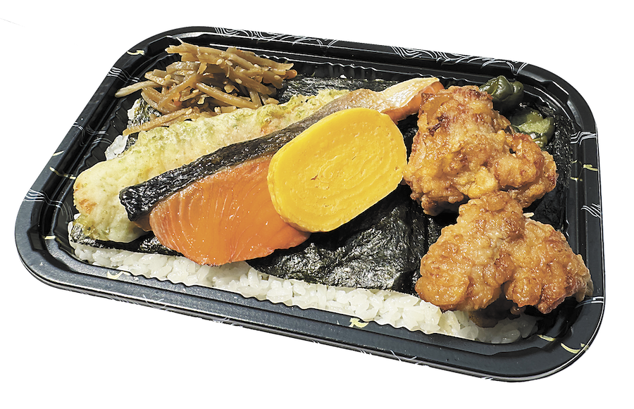開店当初からロングセラーのお弁当です。醤油ベースのタレに漬け込んだ唐揚げと、塩鮭は白ごはんとの相性も抜群。食べ飽きることのない定番の組み合わせです。