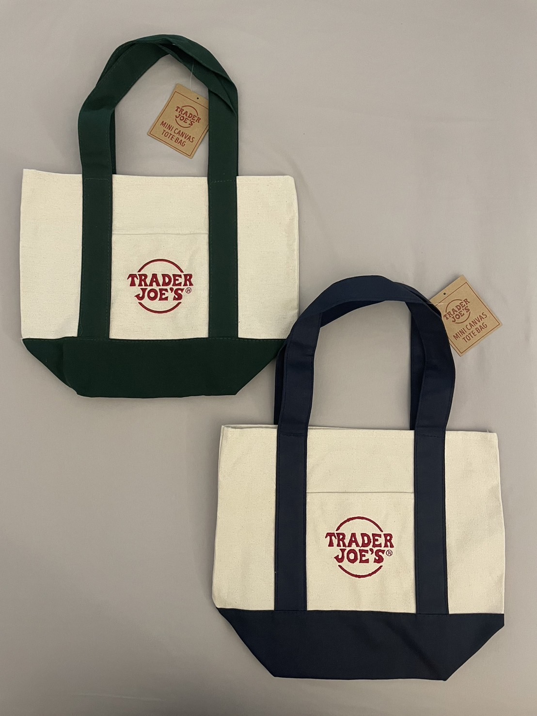 3月に発売され即完売となったキャンバス地のミニトート。青、赤、緑、黄色の4色展開。トレーダージョーズの各店舗で、数量限定。