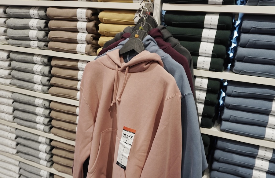 なかでも目を引いたのは、スウェットコーナー。ポップアップの際から人気が高かったというスウェットは、巨大な売り場面積+アメリカ限定アイテムなどもスタンバイ。特にニューヨーカー受けが良かった「Heavy Weight」シリーズは、39.9ドルという低価格に対する品質、またフード部分の立ち具合にもこだわったデザイン性も高く評価されたそうだ。