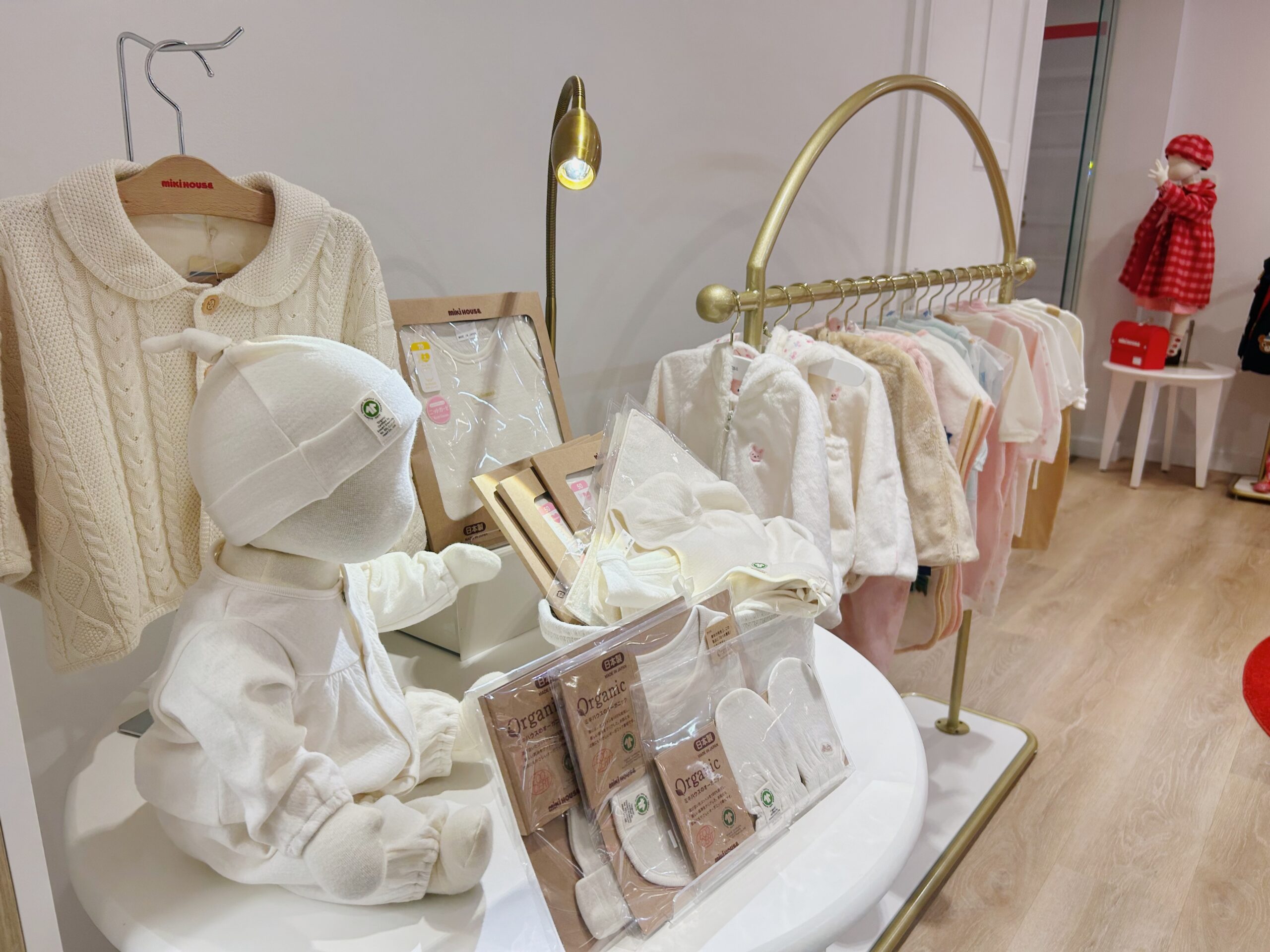 新たな発信拠点ということで店内にもさまざまな工夫が施されており、同ブランドが誇る豊富な靴のセレクションから、各種洋服、そしてギフトに適したオーガニックコットンのミトンやスタイなどの小物類も充実。