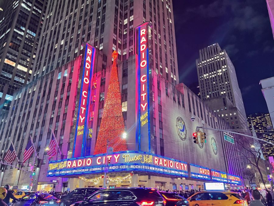 6番街でひときわ輝きを放っているのが、クリスマススペクタキュラ―のショーも行われているラジオシティ。斜め向かいから撮影すると、上手く全体が写真に収まります。