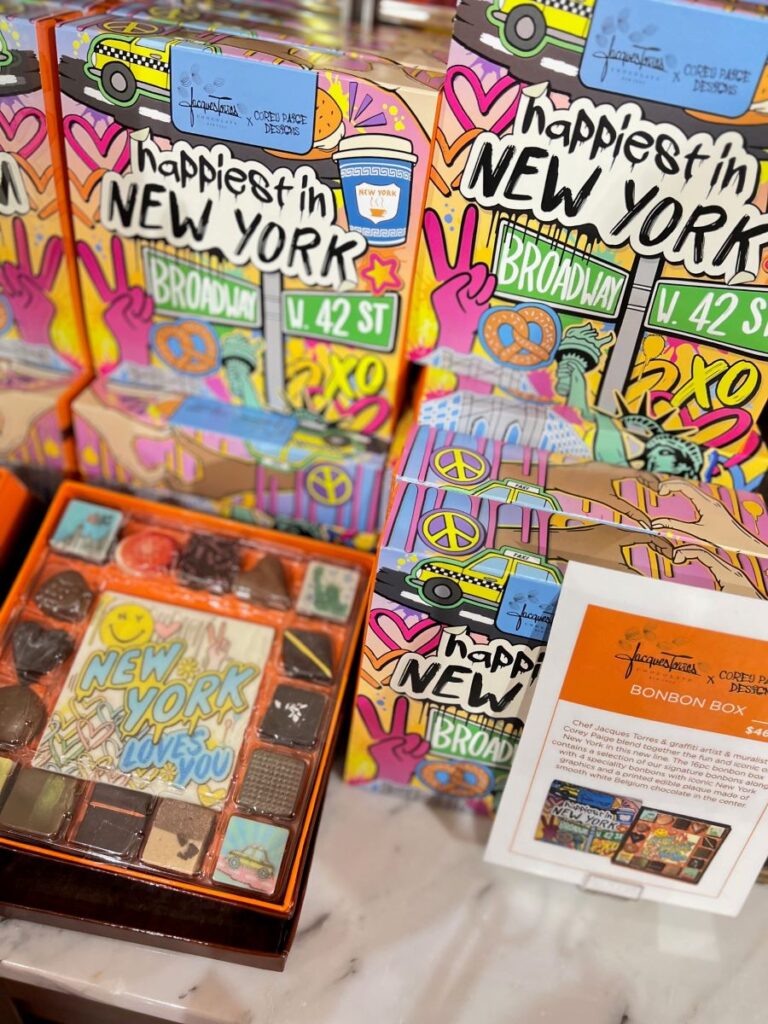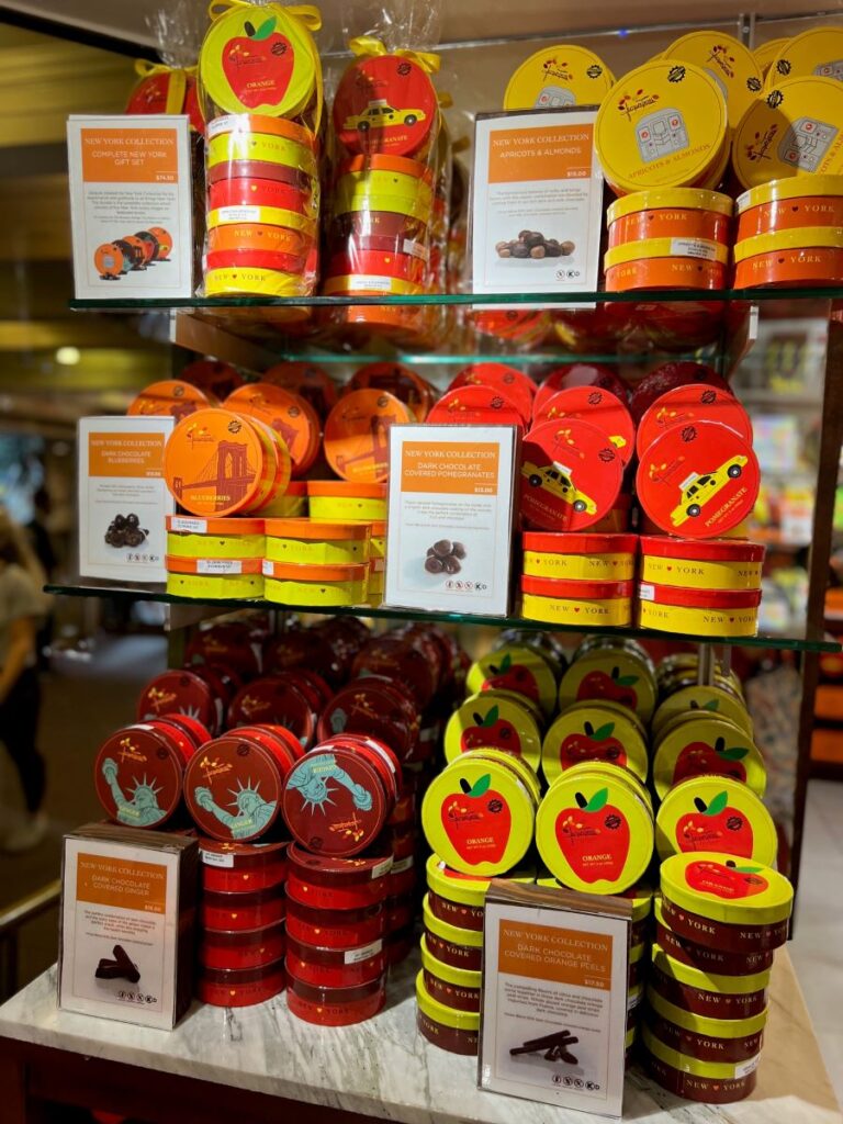 ブルックリン発のチョコレート専門店で、ダンボとグランドセントラル駅に店舗を構える。ニューヨークの象徴的スポットが描かれた丸い箱入りのチョコレート(写真左)は$15前後でちょっとした手土産にも最適。グラフィックアーティスト Corey Paigeとのコラボ商品(写真右)もカラフルで目を惹く。チョコレートにはニューヨークのアイコンが数多く描かれているので「ザ・NY土産」を求める人には特にオススメ。