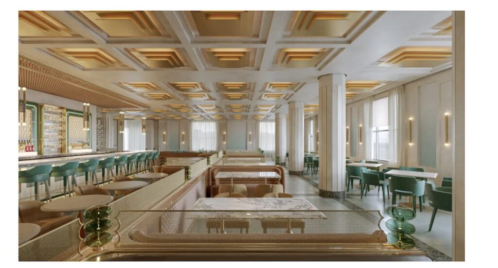 新しくなったウォルドーフ・アストリア内のレストラン、レックスヤード(Lex Yard)の内装(photo: Omegarender)