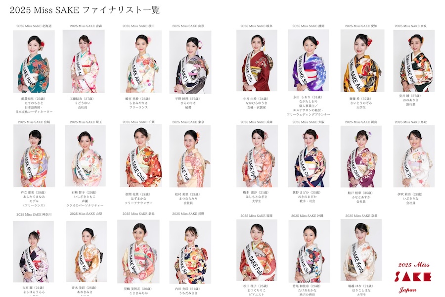 日本酒文化の普及と日本の伝統文化の継承を目的としたコンテスト「Miss SAKE Japan」。2025年度のファイナリストが決定し、全国各地から23名が選抜。同コンテストは、一般的な美人コンテストとは異なり、日本酒に関する知識や日本文化への理解、品格、国際的な視野を持つ女性を見出すことをテーマに行われている。