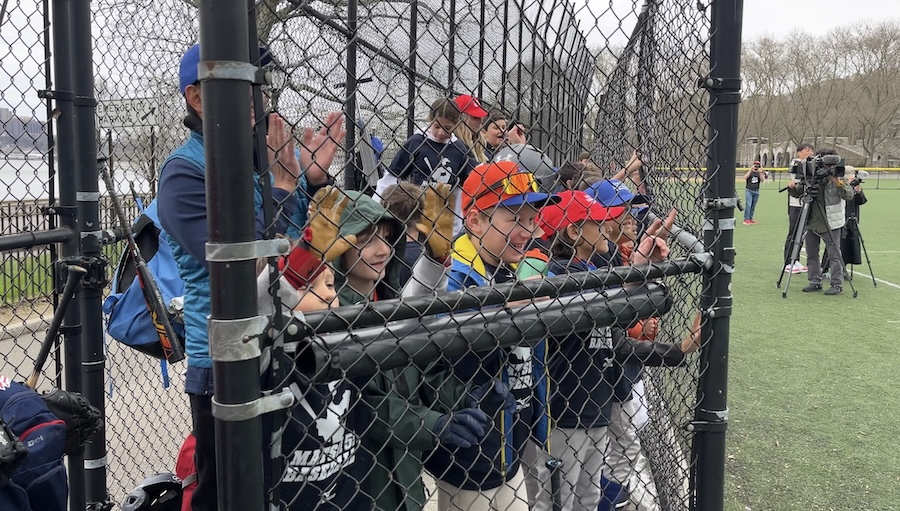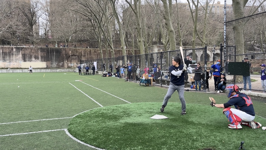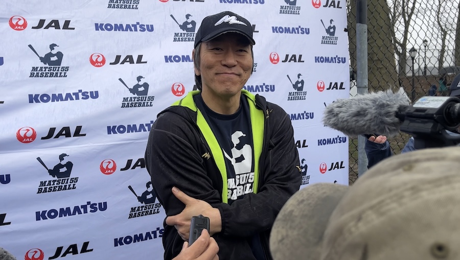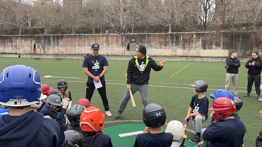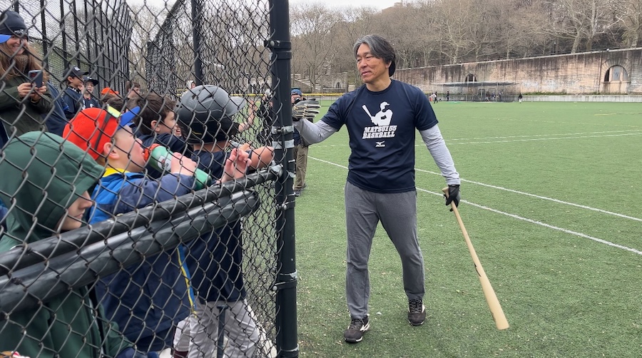 元MLBニューヨーク・ヤンキースの松井秀喜さんが5日、マンハッタンのアッパー・ウェスト・サイドで12歳以下の子どもたちを対象にした野球教室を開催した。今年初の開催となる今回は32人が参加した。