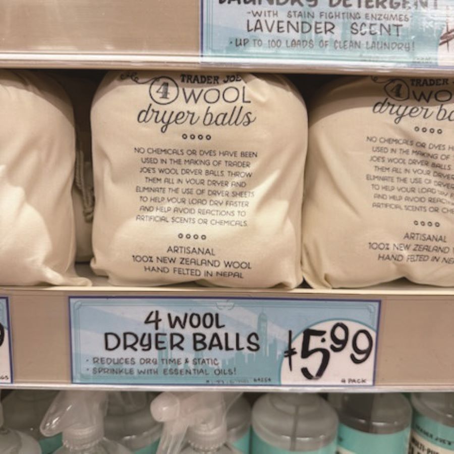 テニスボールより少し大きい、乾燥機に入れて使うウールの玉。乾燥機内でバウンスされることにより服がソフトになり、また早く乾く。静電気も抑えられ、繰り返し使用可能なので、ドライヤーシーツよりもエコフレンドリー。