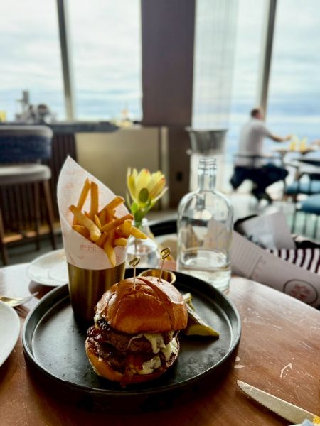 最もコスパが良いのがラウンジの利用だ。カジュアルで開放的な空間で、軽めのアラカルトメニューが楽しめる。ブラックホーク・ブリスケット・バーガー(Black Hawk Brisket Burger)37ドルとシアード・ツナ(Seared Tuna)38ドルを注文したが、どちらもおいしくて大満足だった。その他にも、レタスのサラダ(Lettuces)18ドル、マイタケのポレンタ(Maitake Mushroom with Polenta)38ドル、ビーフタルタル(Beef Tartare)28ドルなど、季節感のある一品がそろう。