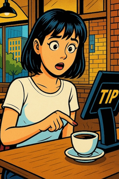 ここで一つ、確認したいことがある。カフェなどで会計する際、タッチパネルがチップを推奨してくるのにまだ慣れないというか、モヤモヤを感じるのは筆者だけだろうか? 18%〜25%くらいから3つの価格が提示され、タッチでこちらが選ぶシステムで、お店によってはこの時点ですでに1番高いチップが選択されている、謎の誘導システムが導入されているところもある。はて?