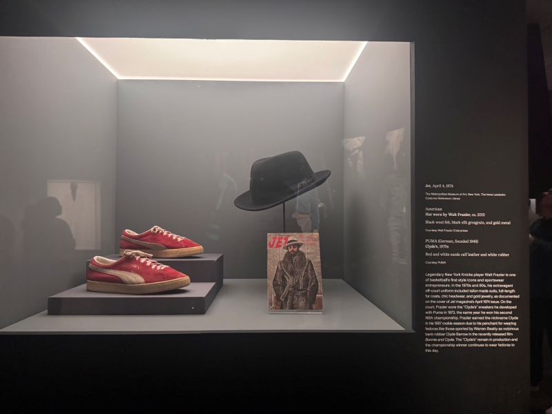プーマが彼のニックネーム「Clyde(クライド)」を冠して発売したスニーカーは、NBA選手としては異例のパーソナルモデルであり、今なおストリートファッションに影響を与えている。展示では、実際に着用していた黒のフェルトハット、雑誌「JET」の表紙を飾った際のファーコート姿の写真も紹介されている。