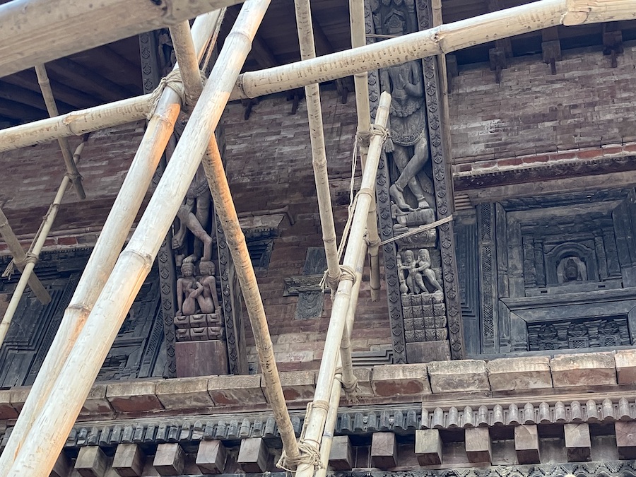 カトマンズは1255年、1833年、1934年、そして最近では2015年と、歴史的に壊滅的な地震に見舞われ、それを乗り越えてきた。ダルバール広場では、驚くほど多くの復興工事が完了していた。金属や木工の職人を含め、必要なすべての仕事をこなす人材を見つけるのに苦労したという。