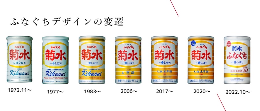 新鮮な品質を保ったまま、軽量で運びやすく、冷蔵庫で冷えやすい。三拍子揃った「缶入り日本酒」で、当時の日本酒業界に衝撃を与えた同ブランド。1972年に「菊水ふなぐち」を発売してから現在に至るまで、缶入り日本酒の製造を続けており、アメリカには1995年に進出した。