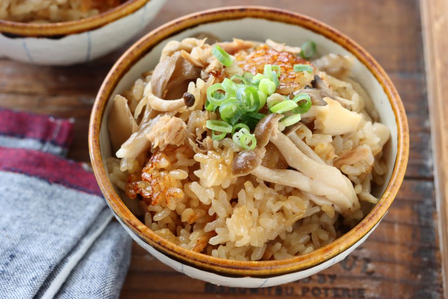 ツナとたっぷりきのこの昆布ぽん酢炊き込みご飯