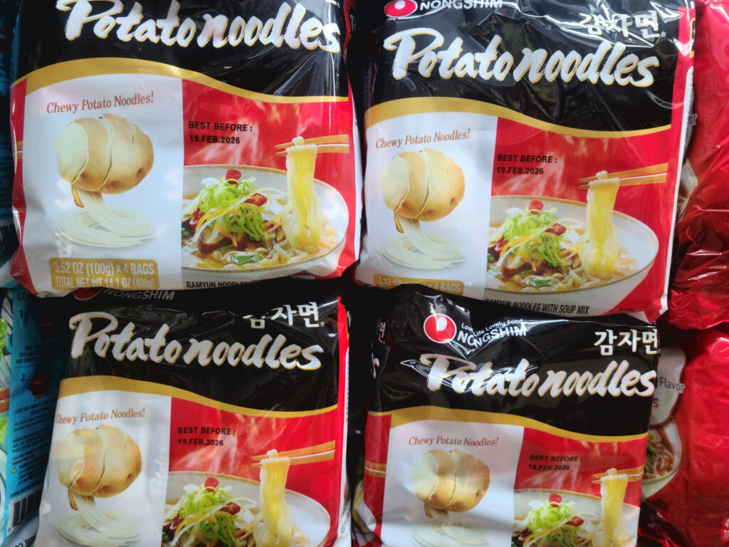じゃがいものでんぷんから作られた麺は、とてもモチモチとした食感が特徴で、全体的なテイストはコンソメスープがベース。唐辛子の具材が加わってピリッとした辛さが感じられるものの、基本的にはマイルドな味。個人的には、イチオシ。