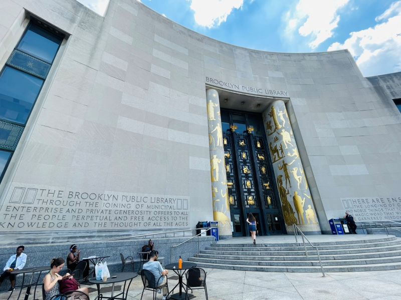 ブルックリン中央図書館は、石造りの壮麗な建築で外観からもその歴史と重厚さが伝わってくる。現在進行中の改修計画は、日本人建築家・森俊子さんの手によるもので、2027年の完成を目指しているという。