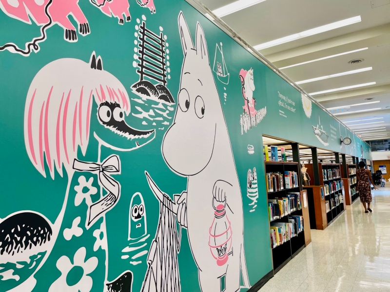 図書館内のユーススペースでは、ムーミンアニメの上映や体験型のコーナーが設けられている。大人には懐かしく、子どもには新鮮なムーミンの世界を、世代を超えて共有できる貴重な空間だ。