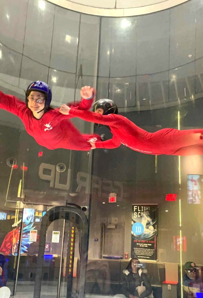 飛行のあと、インストラクターのパフォーマンスを鑑賞できるのだが、それも楽しみの一つだ。天井近くまで一気に上がったり、床ギリギリまで急降下したり、宙返りや回転を交えた動きは圧巻。「あんな風に飛べるようになるために、練習したい!」と感じさせてくれる。特に担当してくれたインストラクターは、とてもユーモラスで、子どもたちとも楽しく会話しながら盛り上げてくれたので、また同じ人に頼みたいと思った。