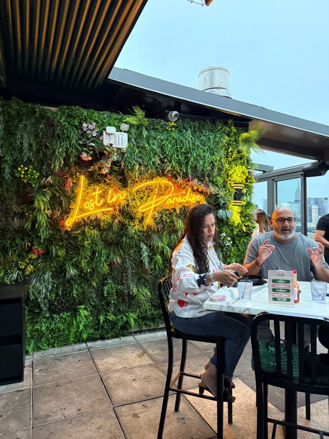 クイーンズ側からミッドタウンを眺めるならこちら。ルーズベルトアイランドの南側も目に入り、多くの橋がかかるマンハッタンでは忘れられがちだがボザール様式で美しい鉄橋が特徴のクイーンズボロブリッジを眺めることができる。その下には2024年の紅白で藤井風が歌った場所も見えるので、聖地としてファンにはたまらないスポット。天井を含めた全てがガラス張りなので、寒いニューヨークの冬でも外の景色を楽しめます。毎週火曜日はTaco Tuesdayとしてタコスが$4、また週末のブランチも大人気。同じビル内の地下には自動販売機に扮したドアを開けて入るスピークイージーもあるのでぜひ。