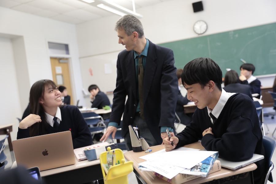 授業は「日本語」「日本史」「一部の選択必修科目」を除き全教科を英語で学びます。日本語科のG9「Introduction to Public Speaking」は、能や和歌といった伝統文化、日本語の特徴などについて学ぶ日本語発声法に特化した授業で、隔週に一度、能の先生から謡いの指導を受けます。最終学期には、能『敦盛』を発表する機会もあります。英語科のG10「Language Arts」は、少人数クラス編成(約10人前後)で、英語のSpeakingとListeningの能力を強化する実践的なコミュニケーションスキルの向上に焦点を当てています。海外経験の程度を問わず、英語と日本語の両言語を自己表現のツールとして使いこなすレベルに到達できるよう段階的なサポートを提供しています。
