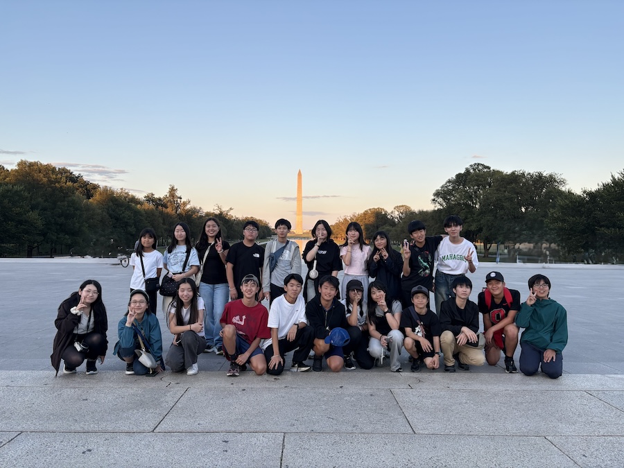 2日目はワシントンD.C.でホワイトハウスやナショナルモールを訪問。ワシントンモニュメントでは石材の色の違いに着目する生徒もおり、展望台からの街並みに感嘆の声が上がった。午後は学年ごとに分かれ、7年生は国会議事堂で英語ガイドによる説明を熱心に聞き、その雰囲気を体感した。8年生はスパイミュージアムで体験型展示に参加し、スパイ活動を模擬体験した。夜のリンカーン記念堂では、刻まれた英語の文章を読み合いながら意味を考え、互いに意見を交換する姿も見られた。広場を行き来しながら景観の美しさに感激する生徒もいた。