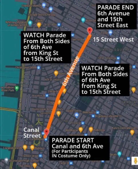 観覧するなら、6番街沿いの場所取りが重要だ。特に ブリーカー・ストリートから14丁目までの区間 は混雑が激しいため、スタート地点付近(キャナル・ストリートと6番街)や終点付近(14〜15丁目)が比較的おすすめだ。また、混雑を避けたい場合は NY1チャンネルの生中継(20時〜21時30分) を観るというのもあり。