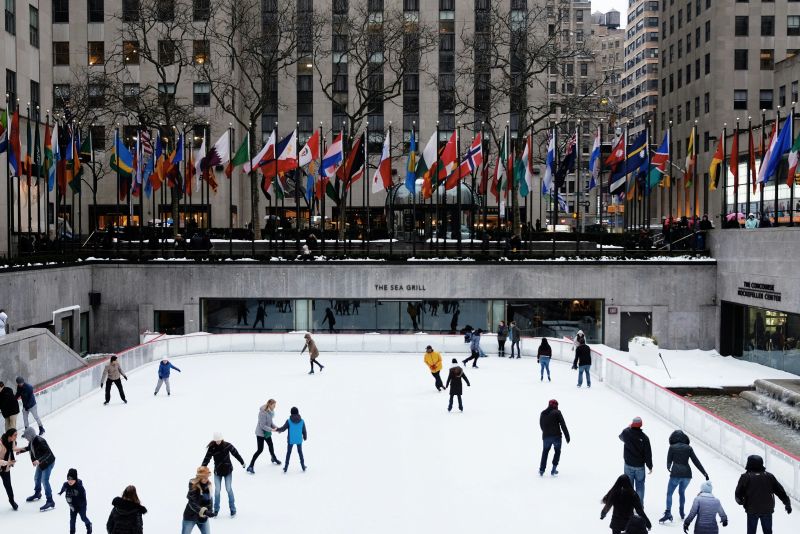 夏季限定の屋外ラウンジが閉じ、ロックフェラーセンターにアイススケートリンクが戻ってくる。巨大クリスマスツリー(点灯日は別日)とプロメテウス像を背景に滑る圧倒的な雰囲気はここならでは。VIPセッションや専用コテージ「Chalet」もあり華やかさ抜群だ。