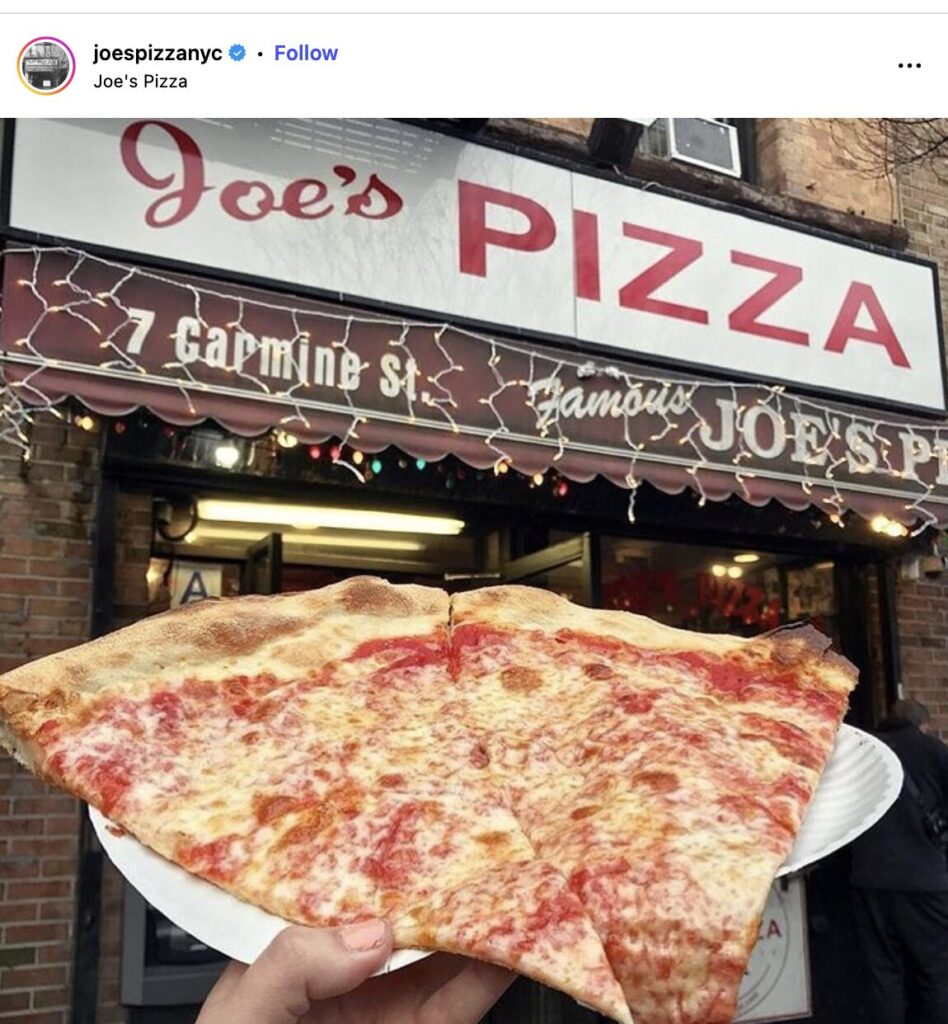 (photo: ジョーズ・ピザの公式インスタグラム@joespizzanycからスクリーンショット=2017年12月10日)