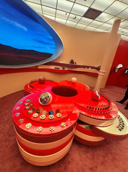ショップの中央には、モノノグラム花モチーフ型のメイクステーションが配置されている。、体験型ギャラリーになっており、訪れるだけでそのラグジュアリーでおしゃれな空間を楽しむことができる。