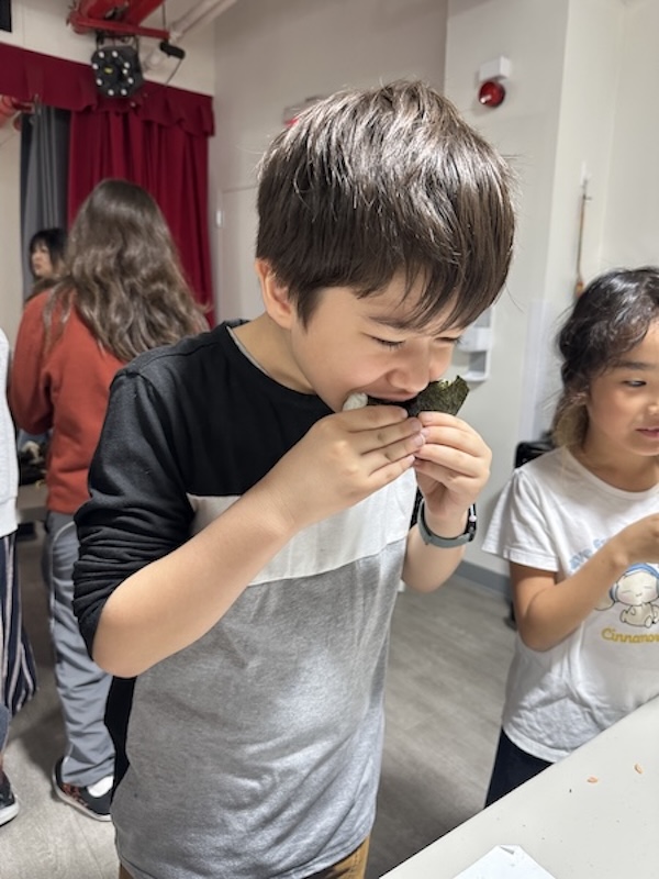 試食タイムでは、「三角にうまく握れた」「たくさん作れた」「おいしい」といった声が上がり、満足そうに味わう姿が印象的だった。帰宅後、自分でおにぎりを作った子もいて、料理に関心をもつ一歩となったようだ。