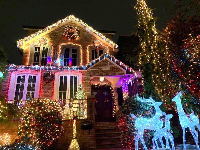 ダイカーハイツの見どころエリアは、83〜86丁目× 11〜13番街あたりだが、特に 84丁目は最も華やかなエリアとして知られている。1980年代から続く スパタ家(Spata House) が有名だ。装飾は 77丁目付近まで広がっていて、ゆっくり歩けば約90分ほどかかる。点灯時間は17時~21時くらいまでで、混雑を避けるなら平日の夜が狙い目だ。