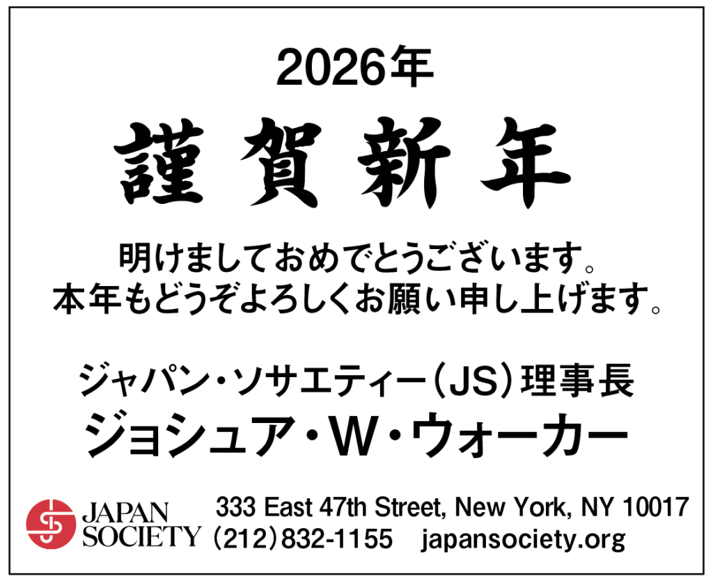 ジャパン・ソサエティー一同、皆様のご健勝と来る年のご多幸を心よりお祈り申し上げます。