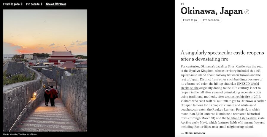 ニューヨークタイムズに選ばれた沖縄県の姿も
