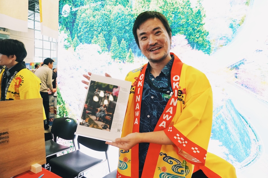 沖縄県の観光スタッフも同イベントに駆けつけ、「旅行博に来ている人だからなのか、結構『行ったことあるよ』という方が多くてびっくりしています。今年はニューヨークタイムズに選んでいただいたということもあり、もっと多くの人に魅力を伝えられたらと思い、新たにニューヨークタイムズに掲載する、このような英語広告も作ってみました」と、沖縄観光コンベンションビューローの仲田さんは語る。