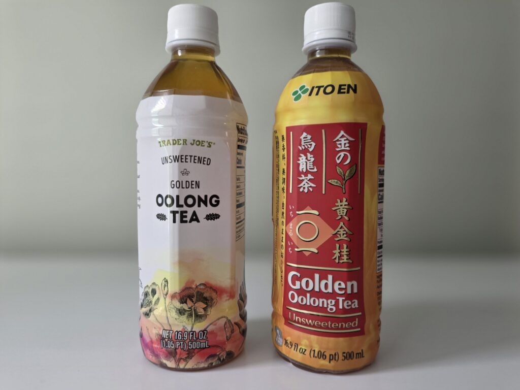 トレジョのゴールデン烏龍茶は1本1.69ドルで販売されている。一方、伊藤園の黄金烏龍茶はアジア系スーパーなどで2.49ドルから2.99ドル程度。差額は約80セントから1ドル30セントで、日常的に無糖茶を購入する消費者にとっては無視できない価格差といえそうだ。