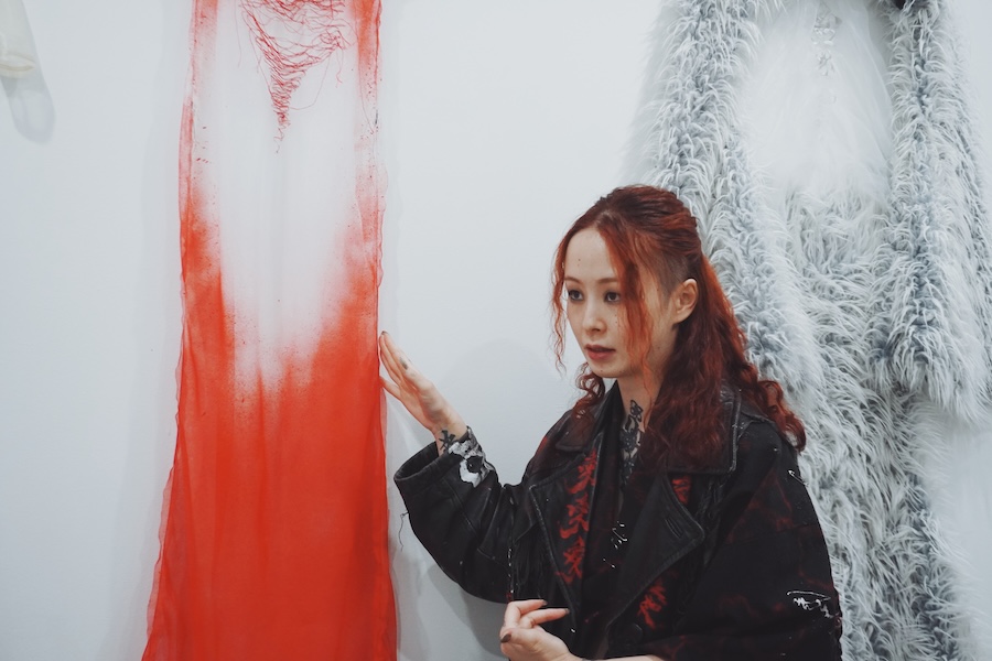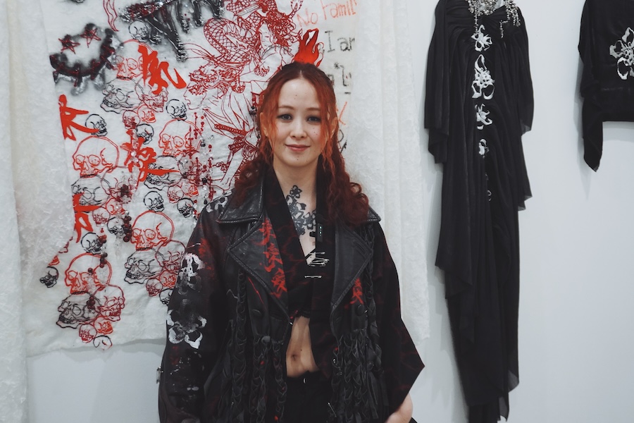 2月15日に開催された「グローバル・ファッション・コレクティブ」で、「R.I.P. 過去の自分への通過儀礼」をテーマに、自身が経験した家庭内暴力や性犯罪などから着想を得たメッセージを、「身にまとう表現」へと昇華させたAoさんのコレクション。