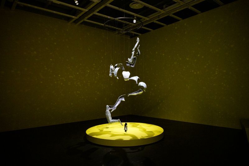 会場には、クィアやトランスコミュニティーの体から型を取った彫刻を展示したヤン・ジュン・クァク(Young Joon Kwak)の作品「Divine Dance of Soft Revolt」など、身体の多様性やコミュニティーのつながりをテーマにした作品も並ぶ。空中に連なる体の断片が踊るように配置されたインスタレーションは、観客に強い印象を与える。
