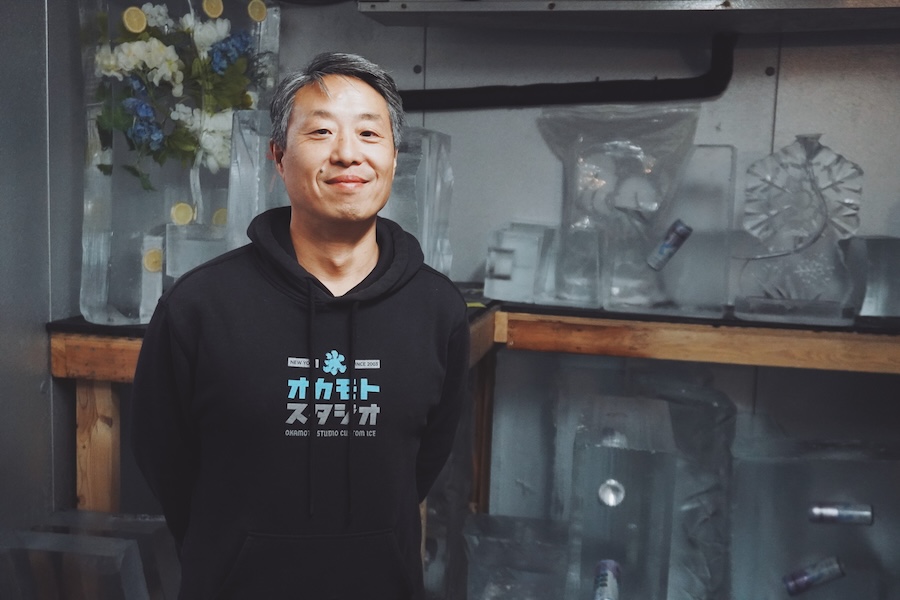 氷彫刻制作会社「岡本スタジオ」オーナーの岡本慎太郎さん(photo: 岡本スタジオ提供)