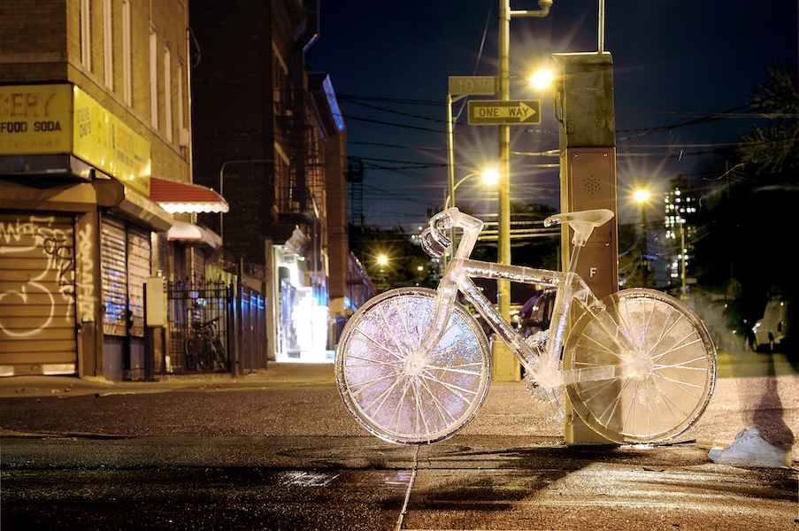 ニューヨークの街で輝く岡本さんの氷彫刻(photo: 岡本スタジオ提供)
