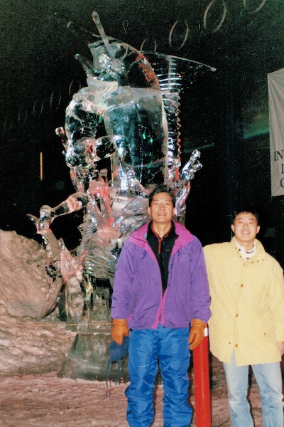 小さい頃、父が日本食レストランのオーナーをしていた関係で、アラスカ州のアンカレッジに住んでいたんです。ある日、寒い冬の夜に湖に連れて行かれ、友達のパーティーへの手土産として自分たちで彫った白鳥をプレゼントしたんです。するととても喜ばれて、そこから僕が父を手伝いながら、サイドビジネスとしての氷彫刻がスタートしました。