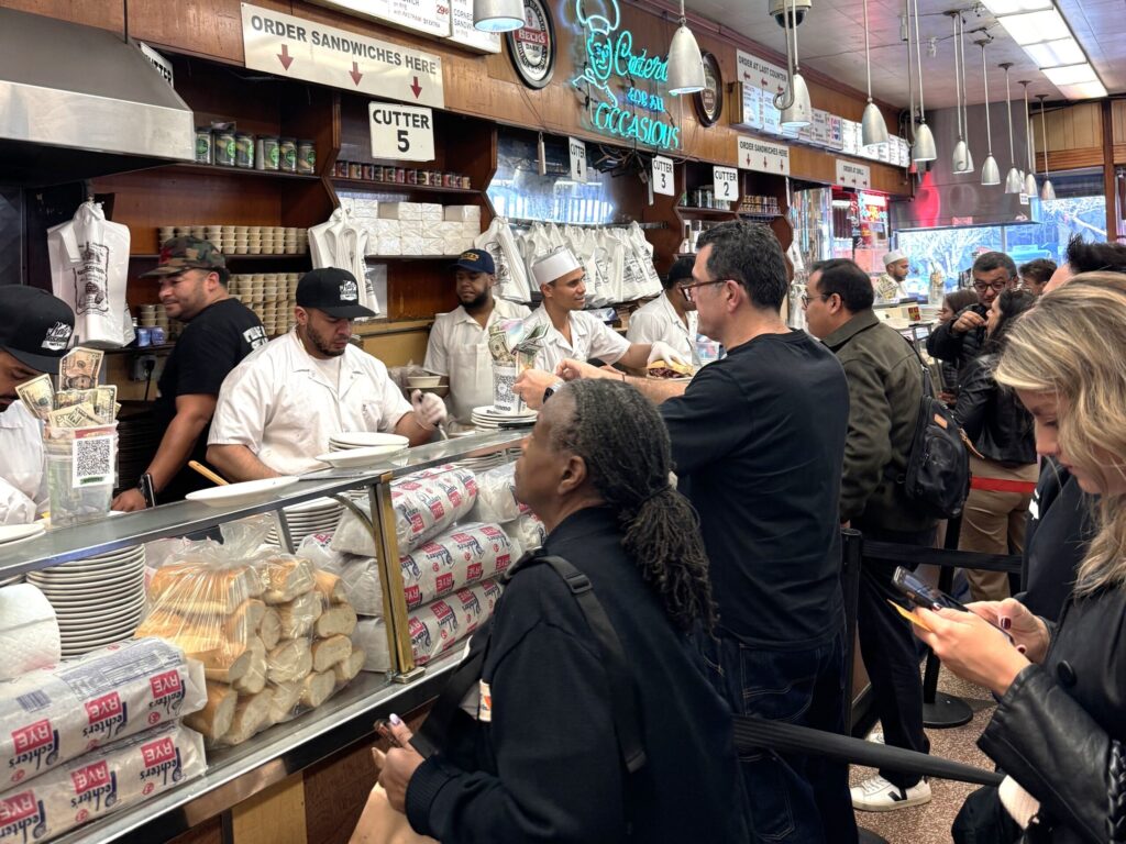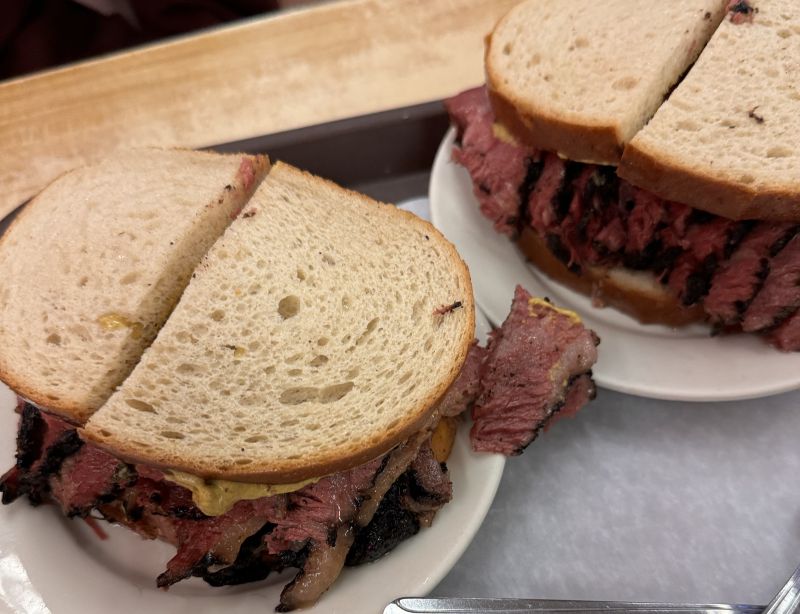 看板メニューは、手作業でスライスしたパストラミをたっぷり挟んだサンドイッチ。ボリュームと味で世界中の観光客やニューヨーカーを魅了している。メグ・ライアンとビリー・クリスタルが出演したラブコメ映画の傑作「恋人たちの予感」のロケ地としても有名だ。