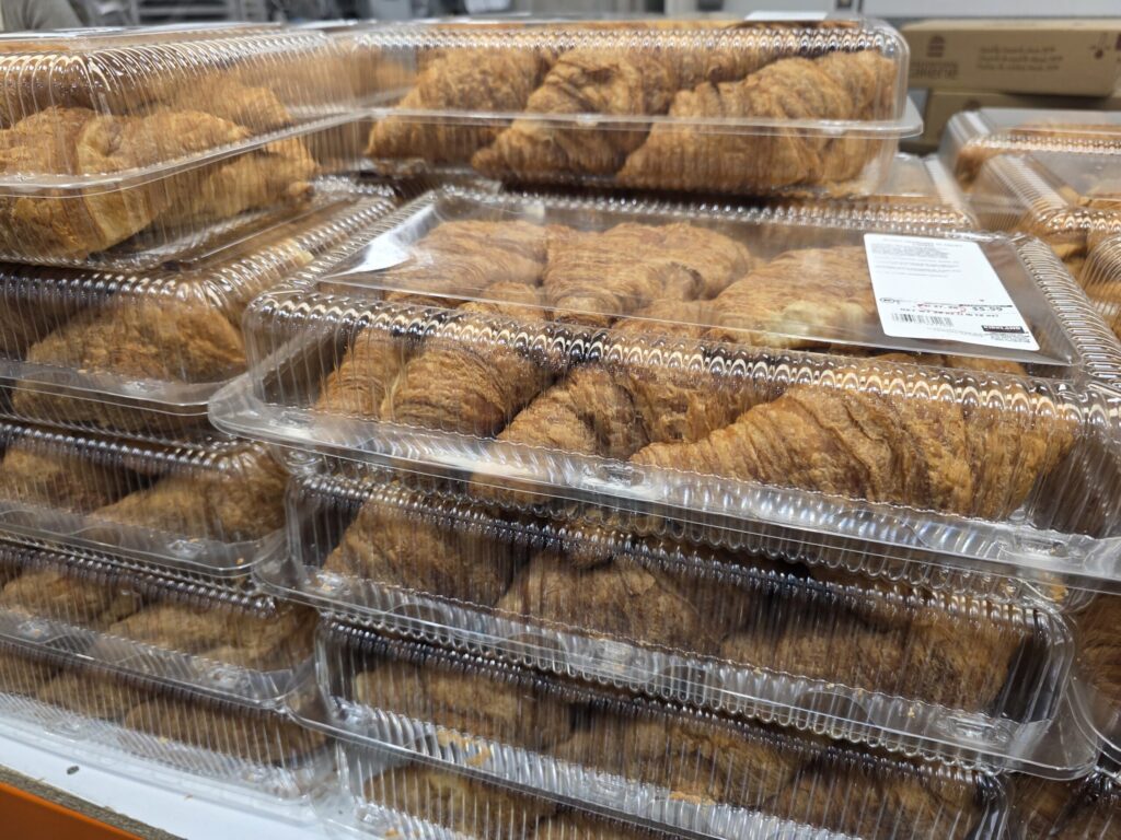 ファミリーサイズのクロワッサンが大量に並ぶコストコのベーカリーコーナー