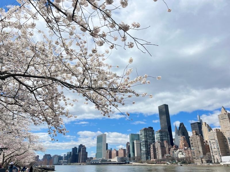 ニューヨークの桜といえばセントラルパークやブルックリン植物園が定番だが、空から見る絶景ポイントもある。イーストリバー上空を走るロープウェイ、ルーズベルト島トラムは、わずか2.90ドルで桜の絨毯を一望できる知る人ぞ知るお花見スポットだ。