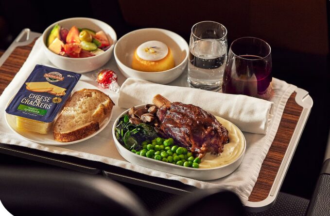 超長距離路線に対応し、食事時間を自由に選べるオンデマンドサービスを導入。オーストラリア産の食材を生かしたメニューやワインプログラムも充実している。