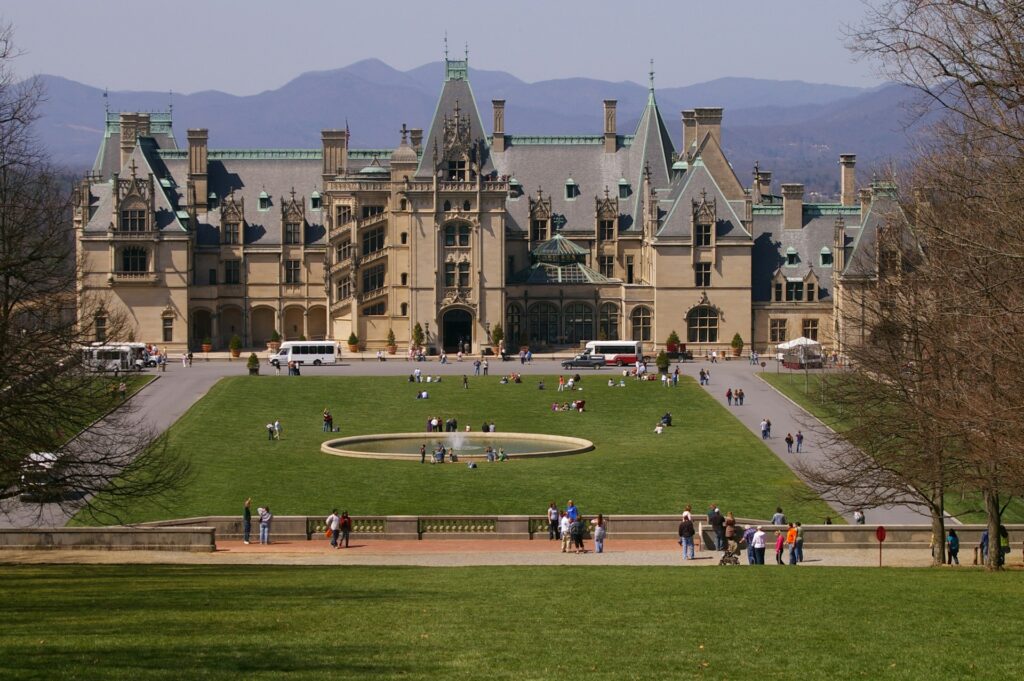 ジョージ・ワシントン・ヴァンダービルト2世のためにフランスのシャトーを模して1889〜1995年にかけて建造された、ギルデッドエイジ(金ピカの時代)を象徴する建物。床面積は約16万6228平方メートル、居住面積は1万2568平方メートルに及ぶアメリカ最大の個人邸宅で、寝室35室、バスルーム43室、そしてなんと暖炉は65基も備えている。ヴァンダービルト2世の兄姉たちの邸宅は、ニューヨーク州ハイドパーク、ロングアイランドのゴールドコースト、ロードアイランド州ニューポートにあり、いずれも観光地となっている。