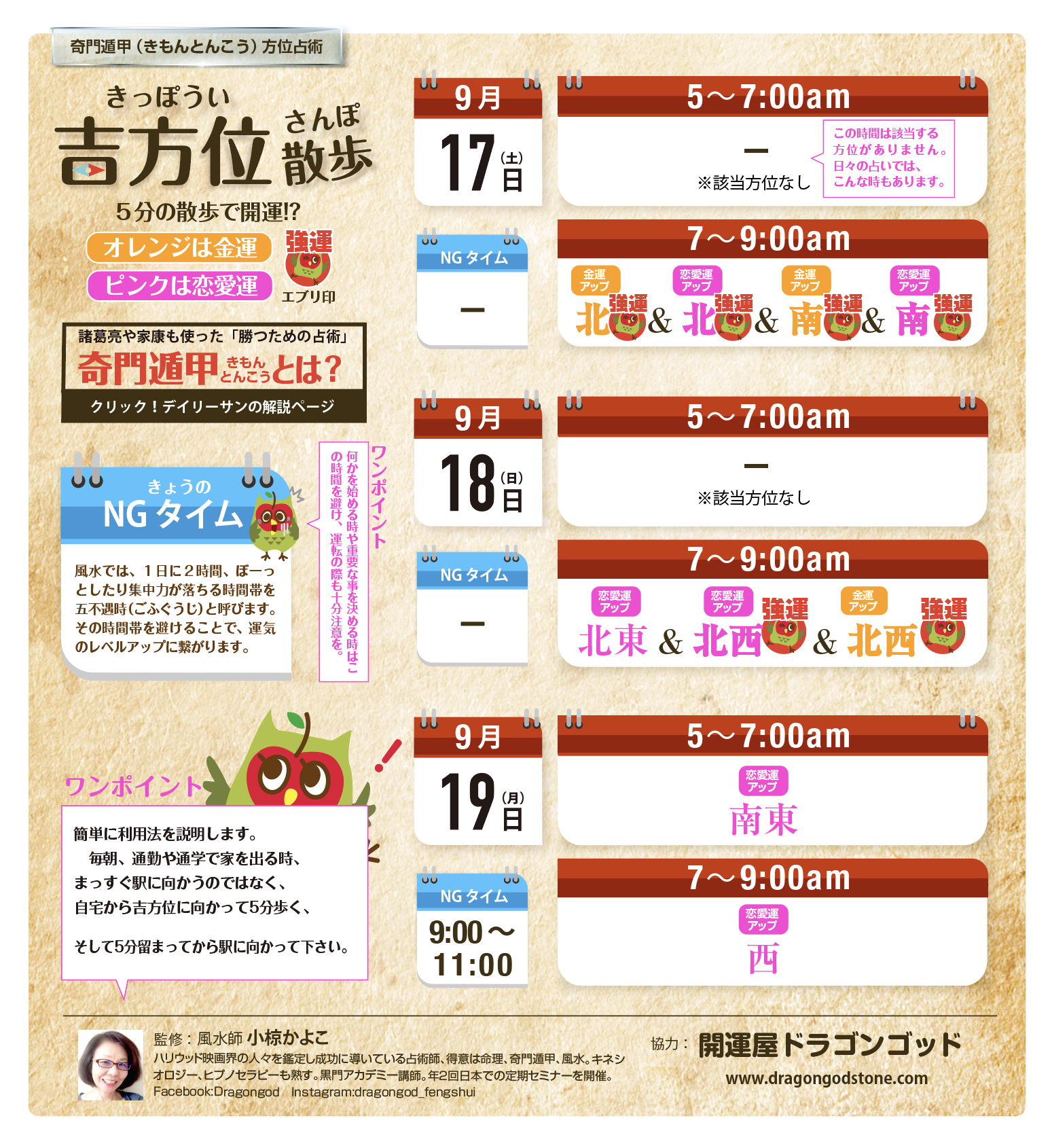 【明日と週末の運気】吉方位散歩 9月3日(土)〜5日(月)