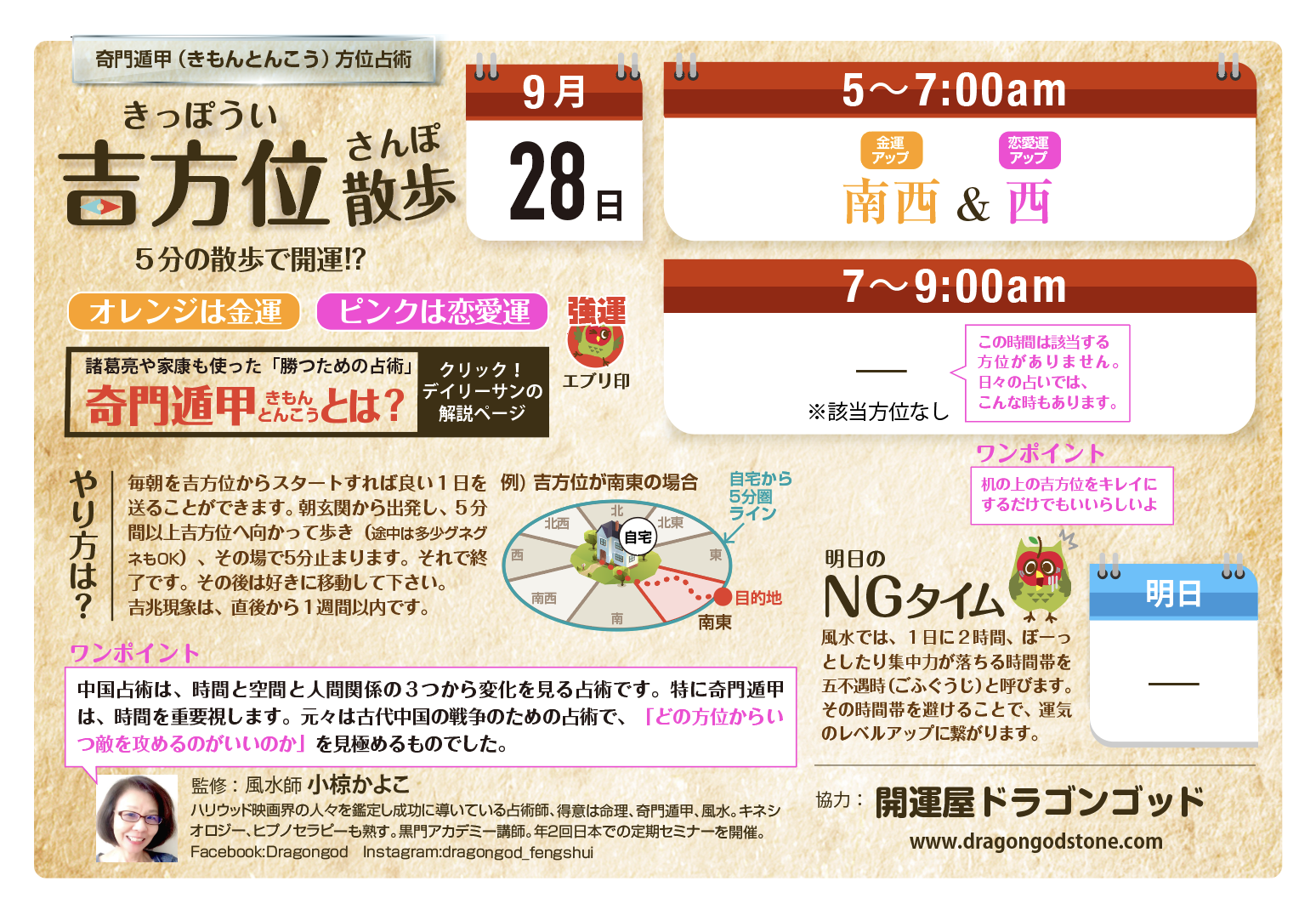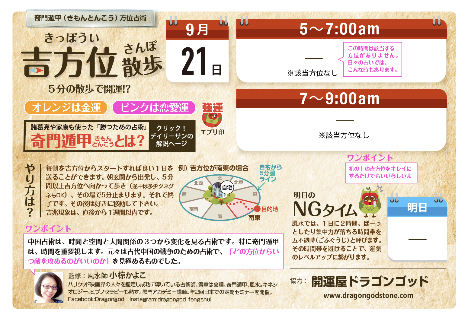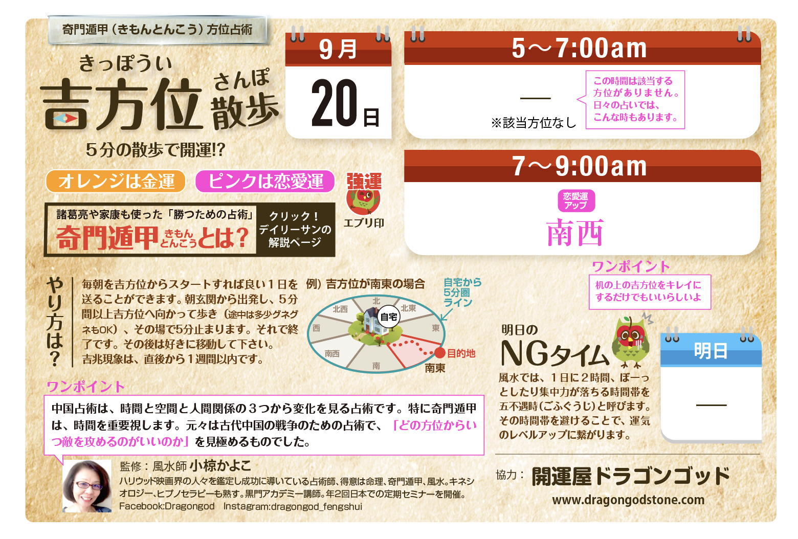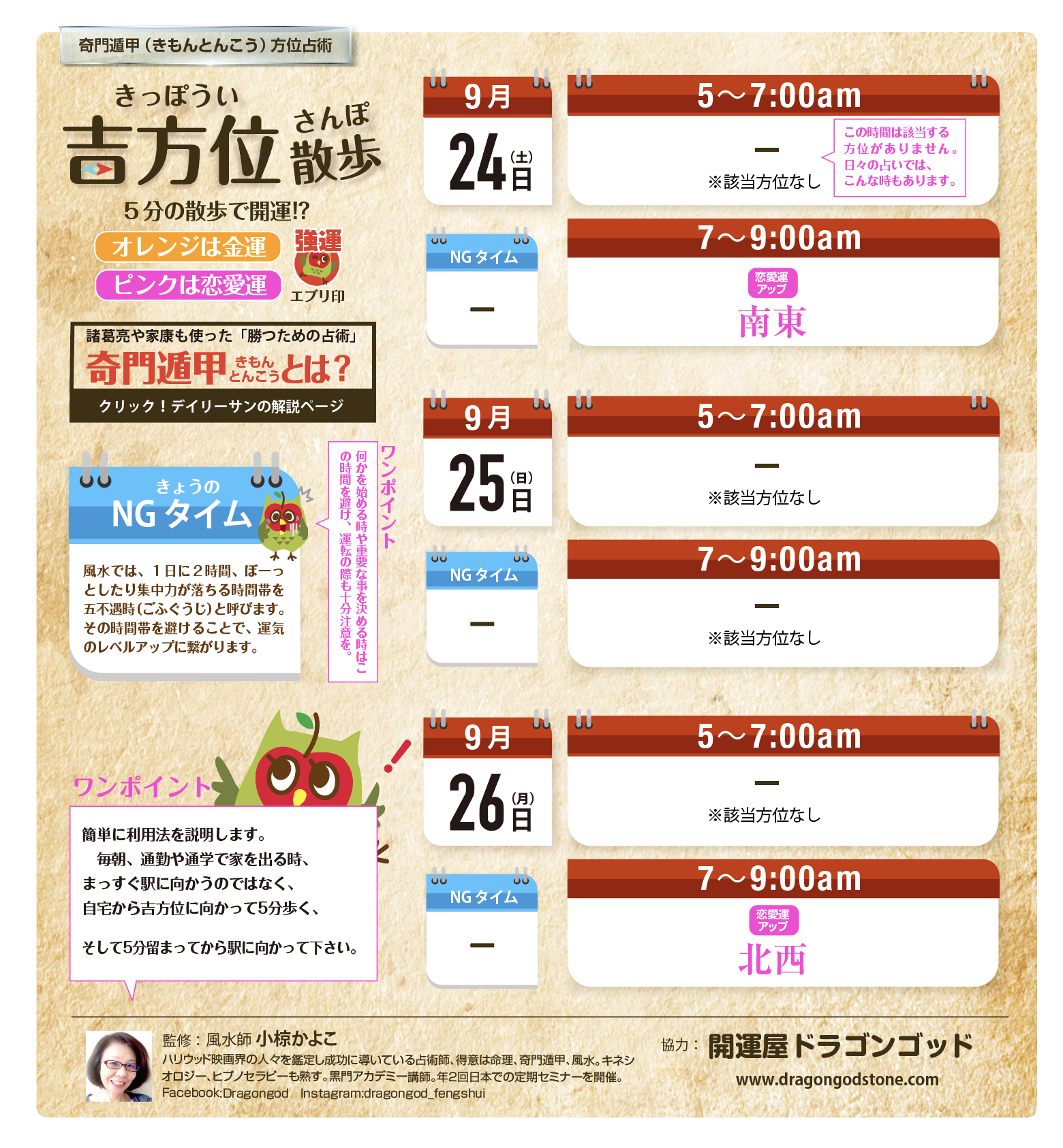 【明日の運気】吉方位散歩 9月24日(土)〜26日(月)