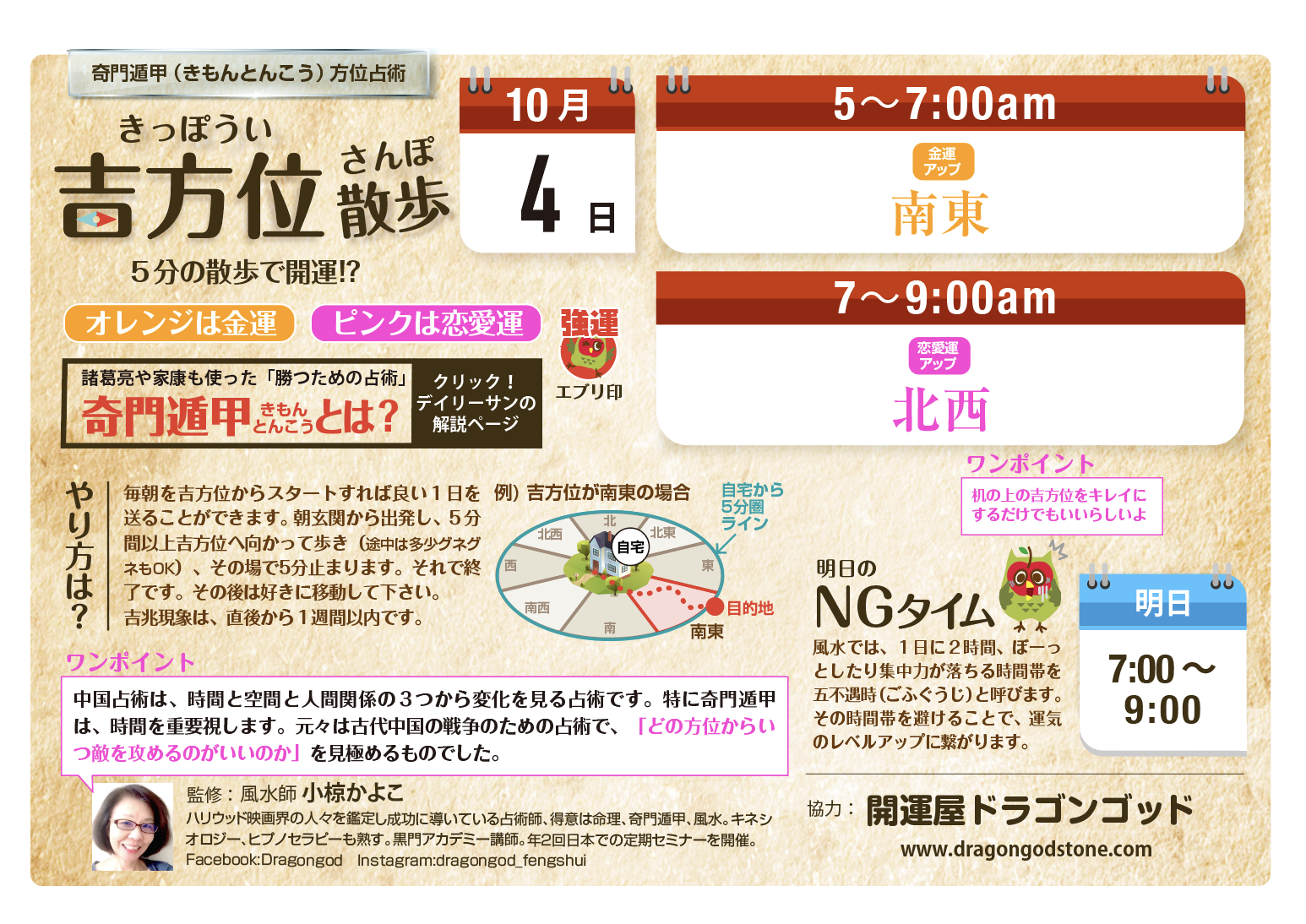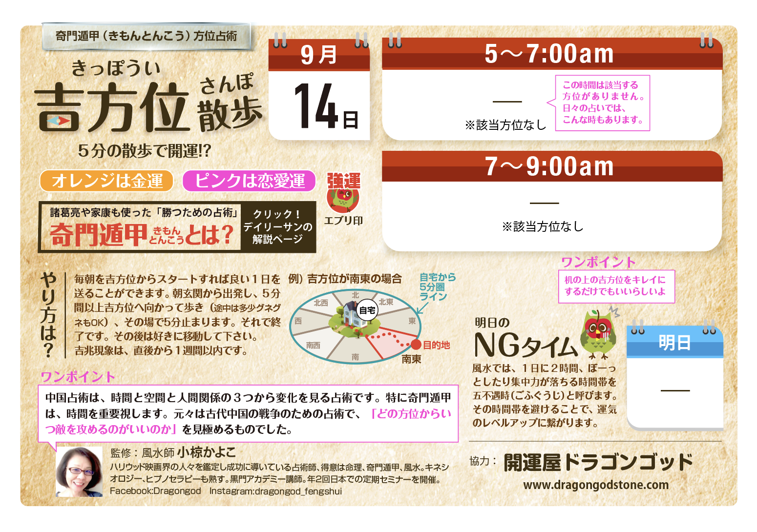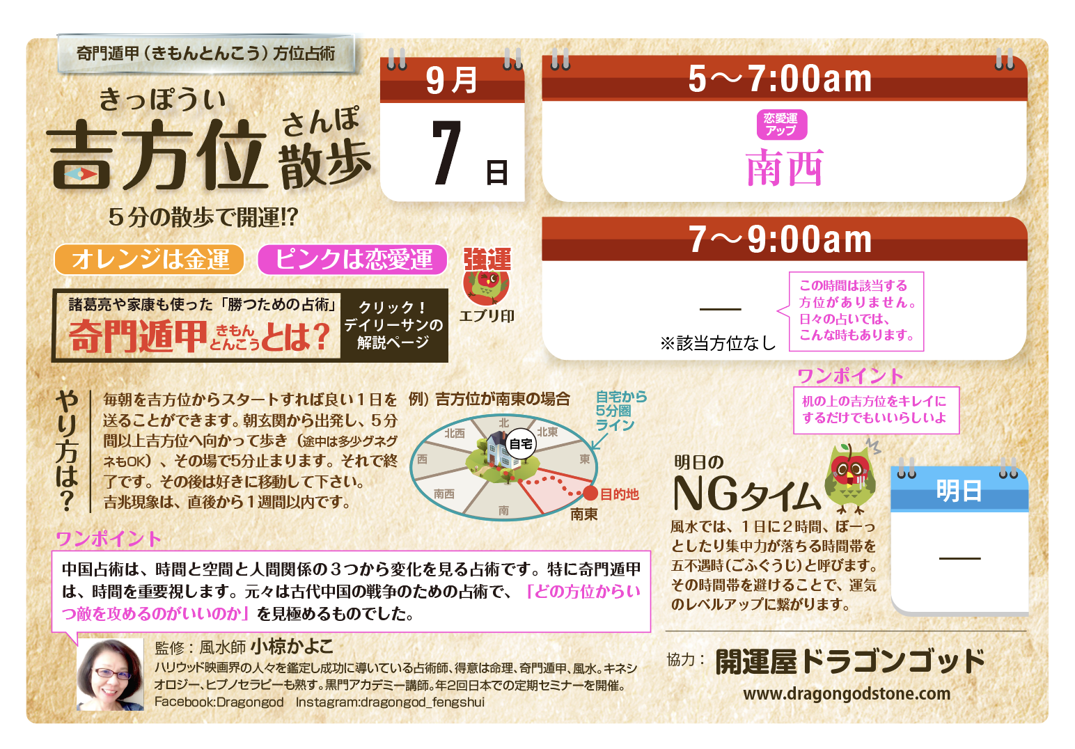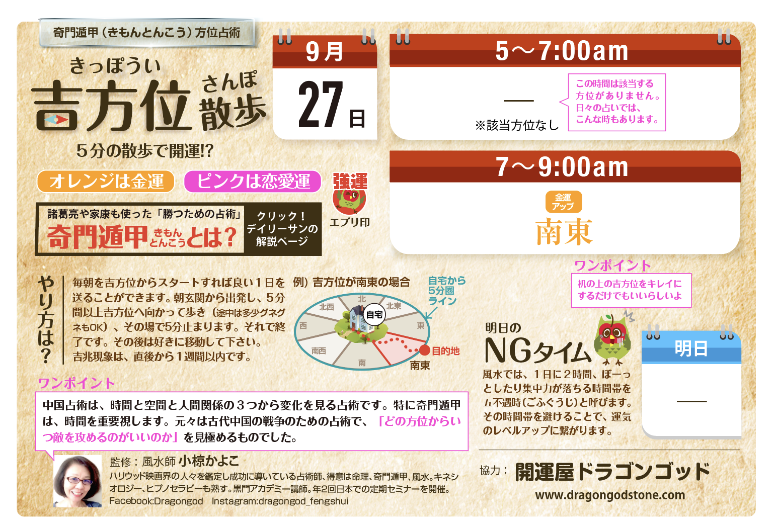 【明日の運気】吉方位散歩 9月24日(土)〜26日(月)