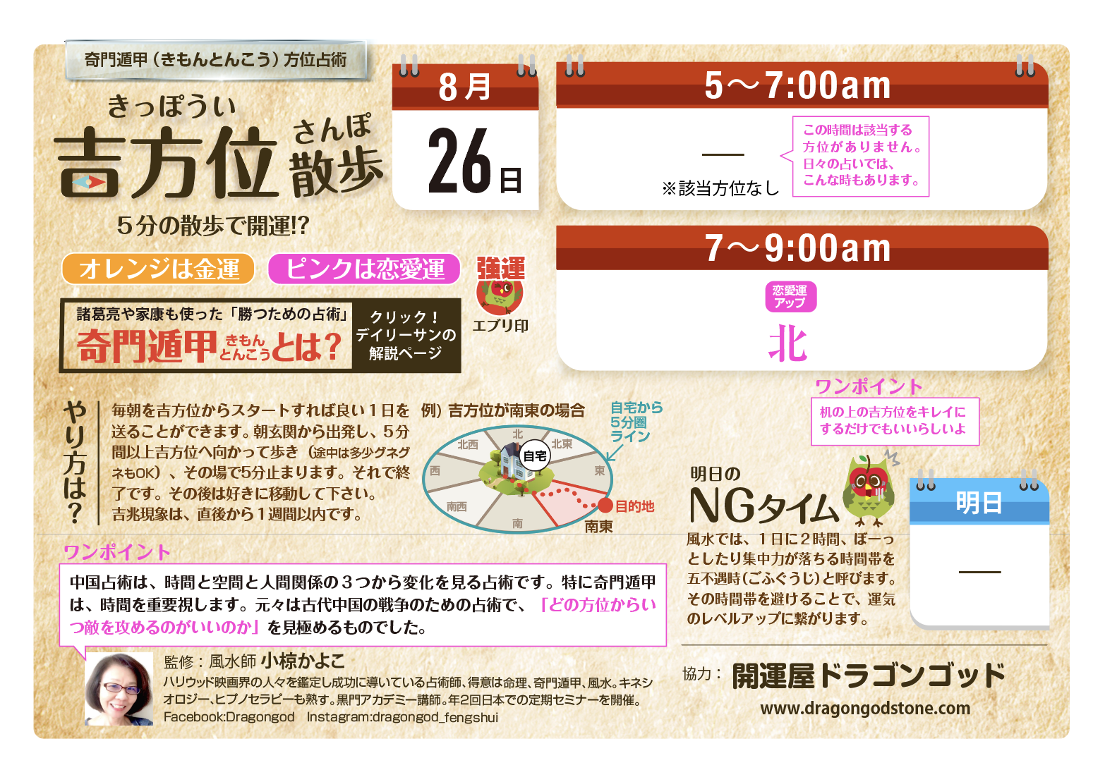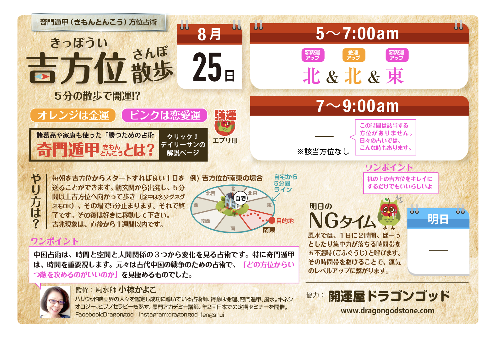 【明日の運気】吉方位散歩 8月27日(土)〜29日(月)