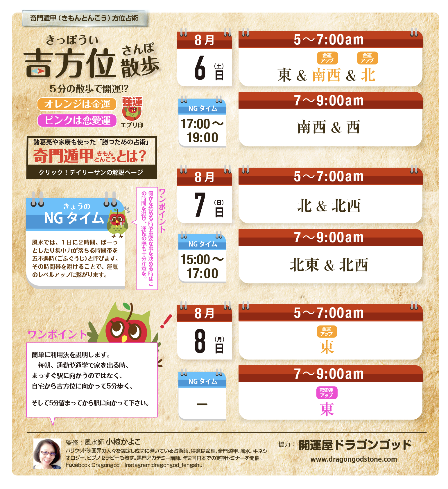 【明日と週末の運気】吉方位散歩 8月20日(土)〜22日(月)